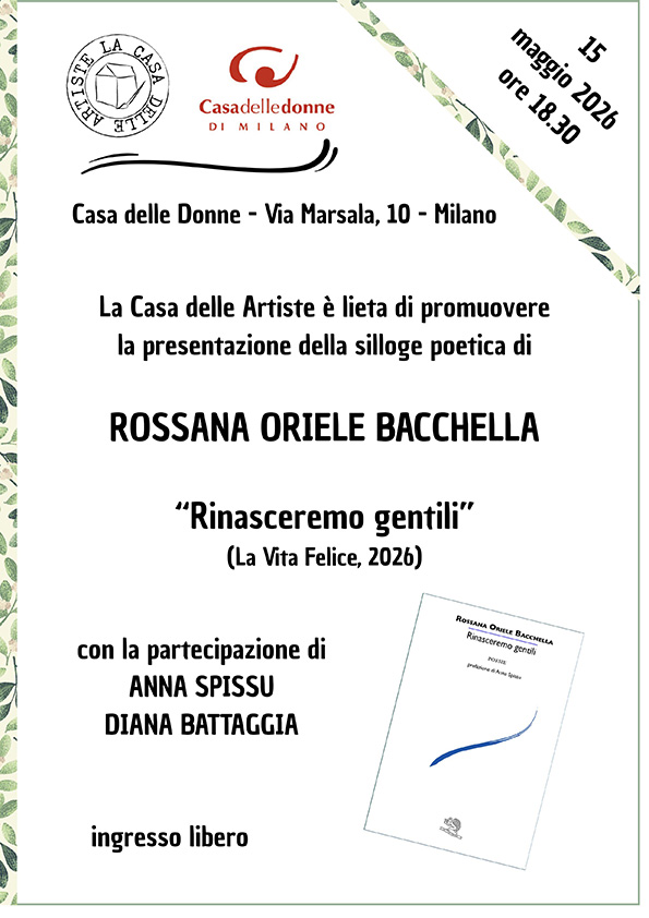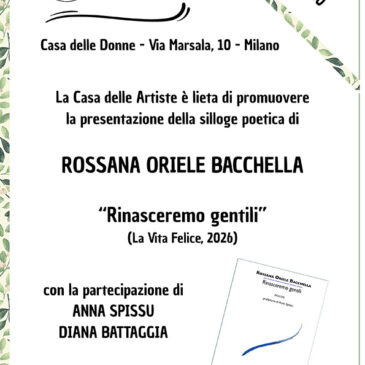 Presentazione del nuovo libro della nostra socia ROSSANA ORIELE BACCHELLA dal titolo “Rinasceremo gentili” in uscita a fine aprile con La Vita Felice.